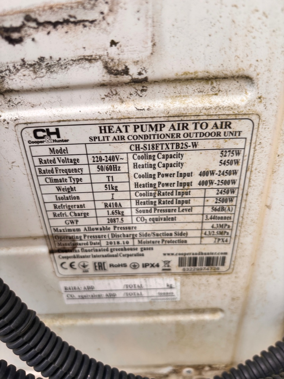 Главная Статьи Диагностика, ремонт , сервис, заправка , Тепловой насос Cooper Hunter CH-S18FTXTB2S-NG
