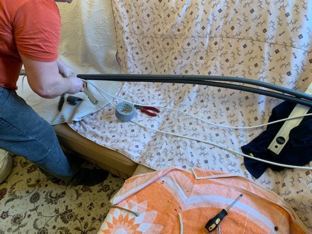 - Крепление пластикового короба 60х40 мм, который позволит подвести коммуникации к отверстию – его сверлят с помощью бура Cayken 916, диаметр составляет 52 мм.