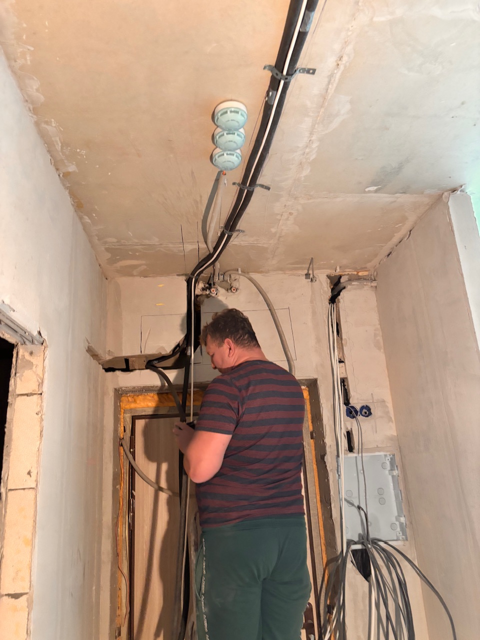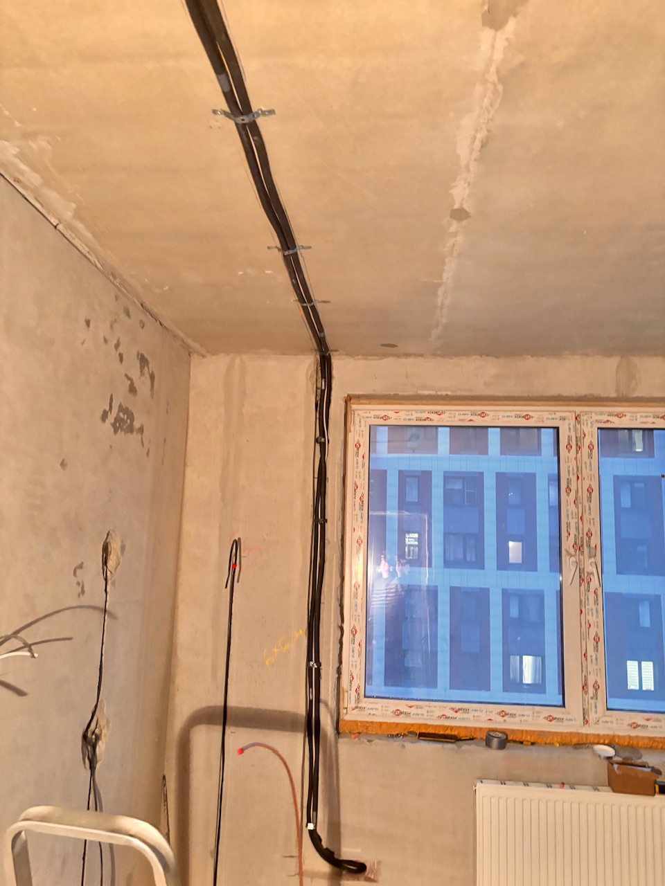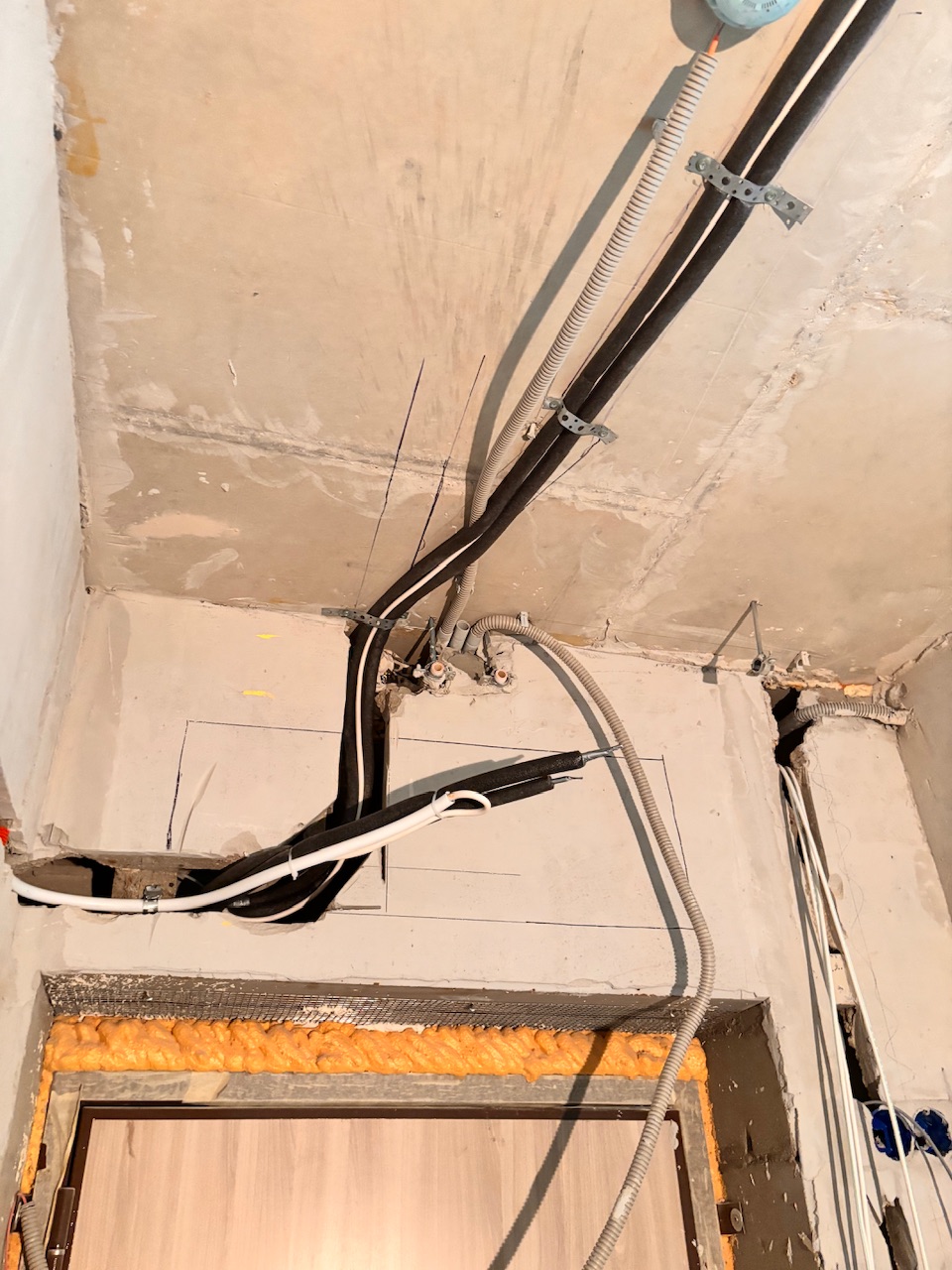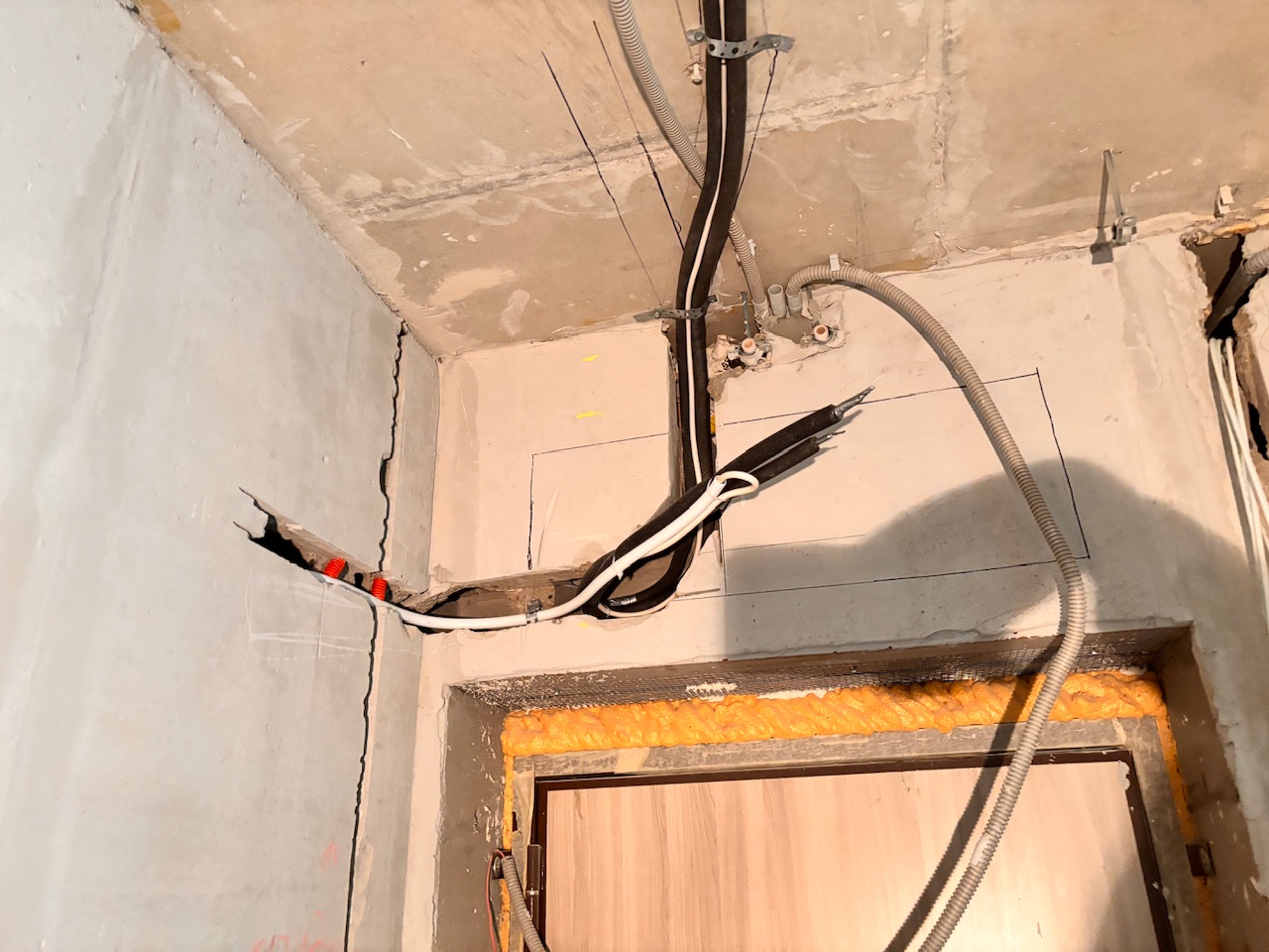 Главная Статьи Монтаж первый этап , закладка трассы, штробление стен, Дмитровское шоссе 107А корпус 1