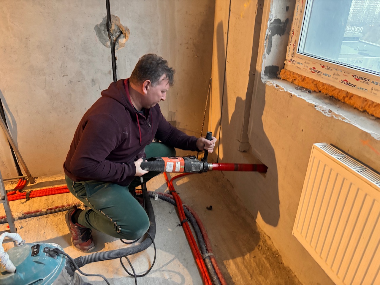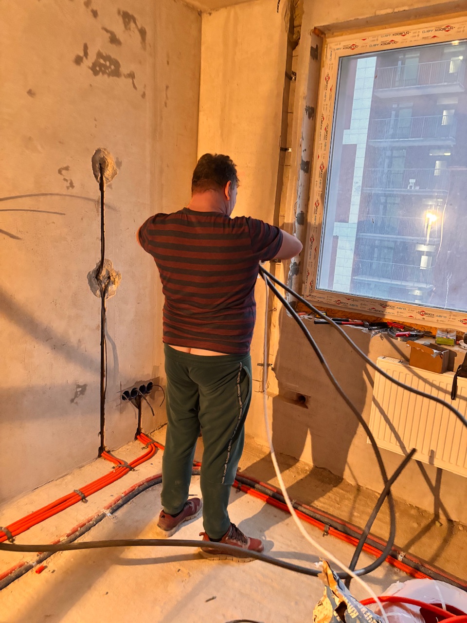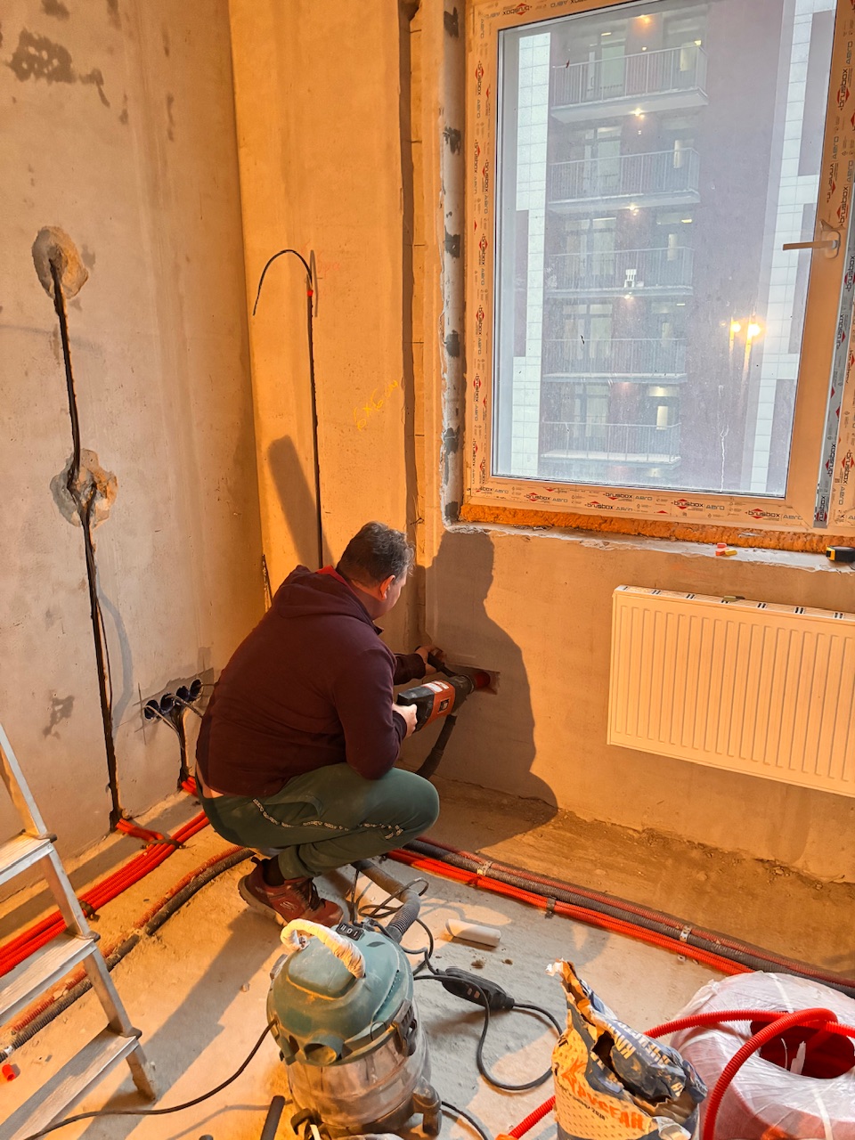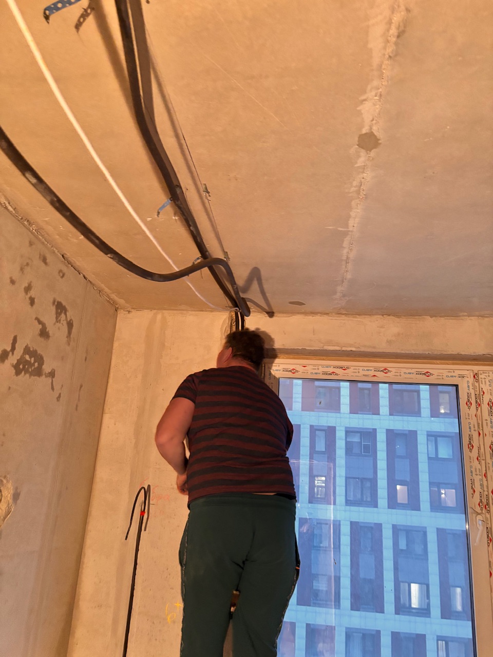 Главная Статьи Монтаж первый этап , закладка трассы, штробление стен, Дмитровское шоссе 107А корпус 1