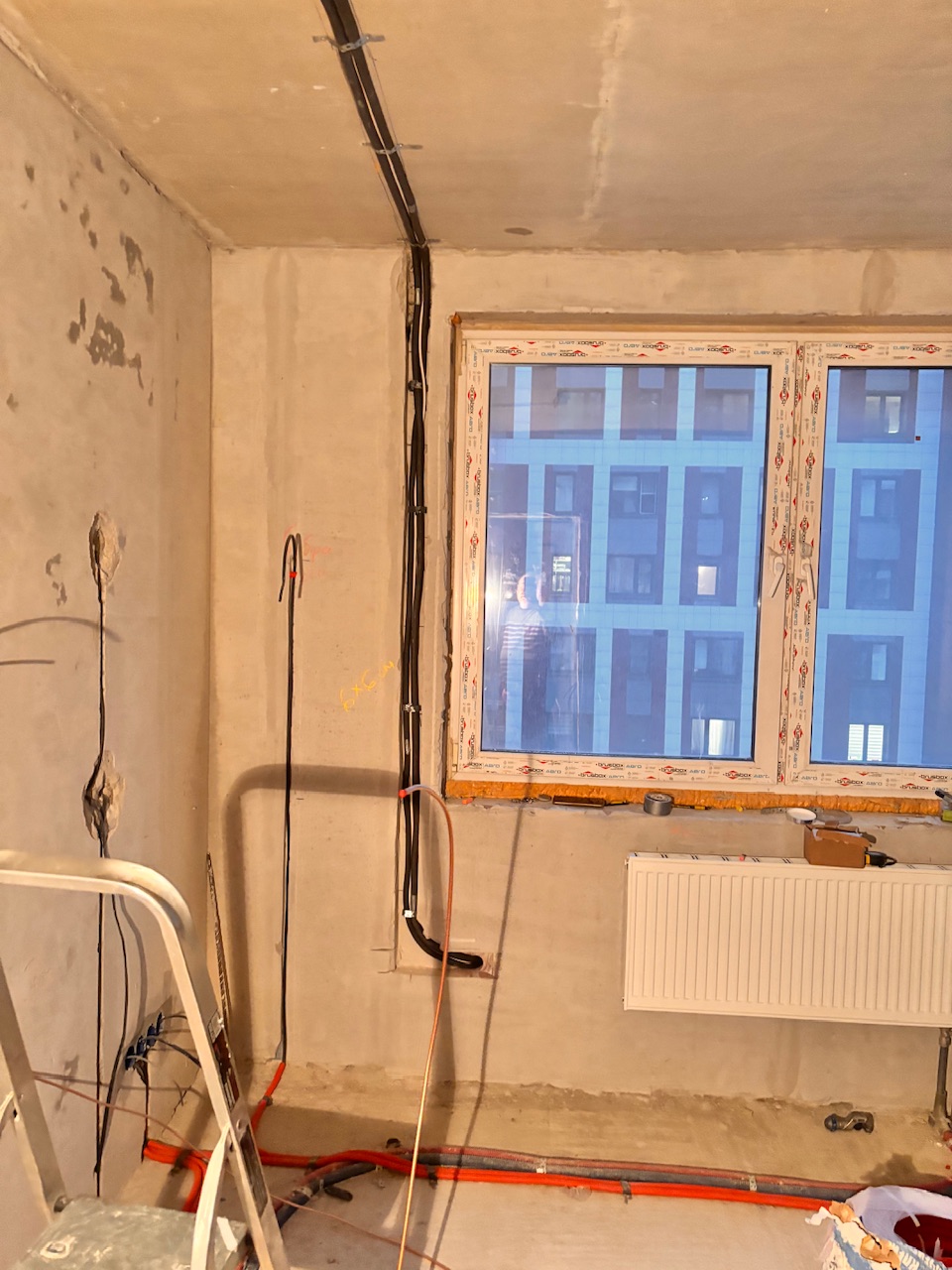Монтаж первый этап , закладка трассы, штробление стен, Дмитровское шоссе 107А корпус 1