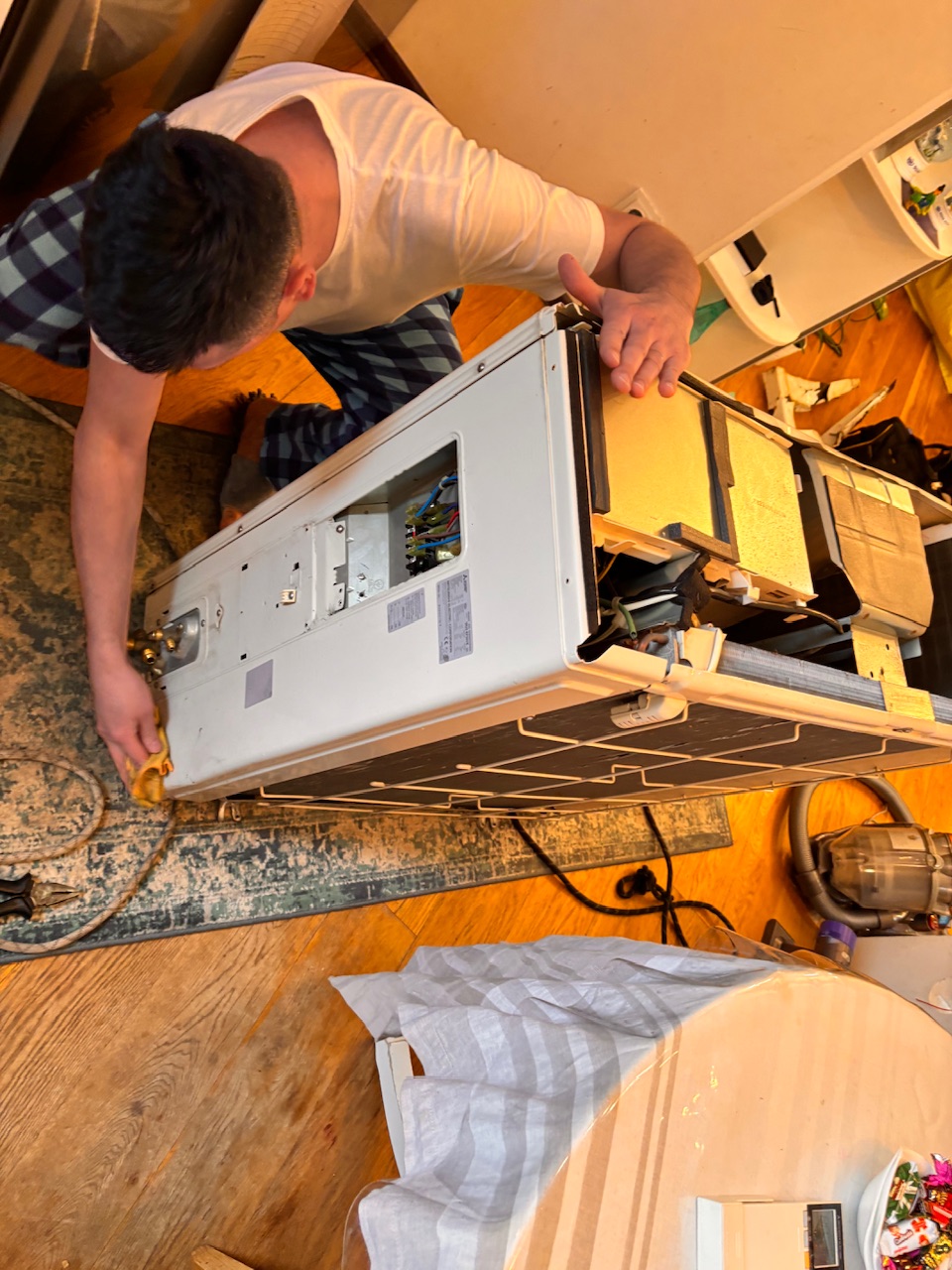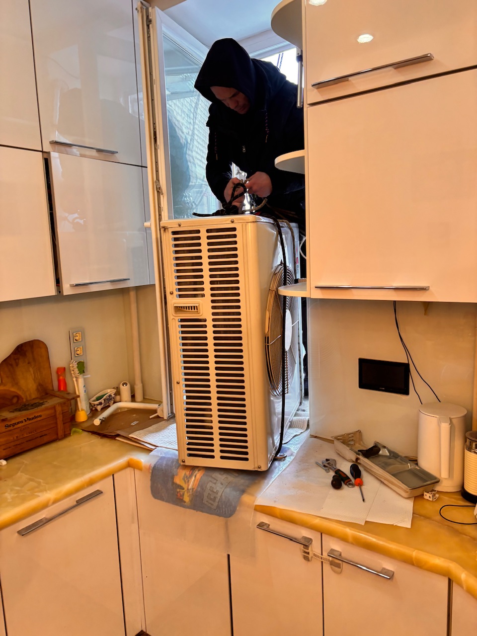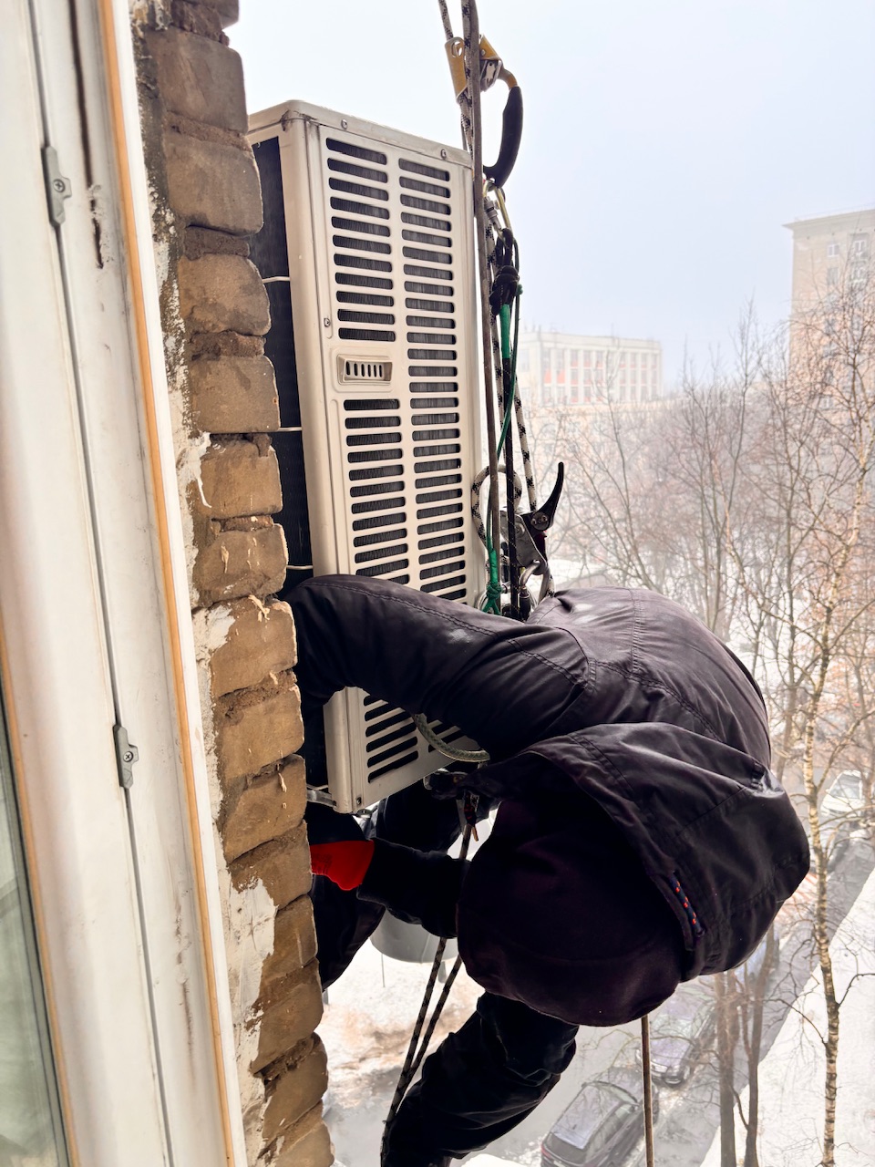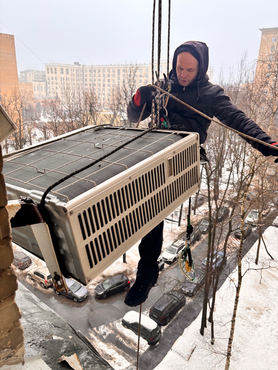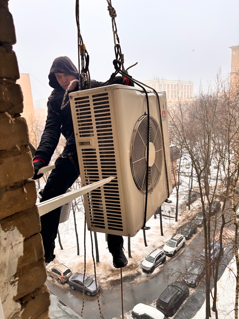 Главная Статьи Упал лед на кондиционер , альпинист , демонтаж , монтаж замена , сплит -система Mitsubishi Electric muz-ef50ve , ул Дмитрий Ульянова Д 4 к 1