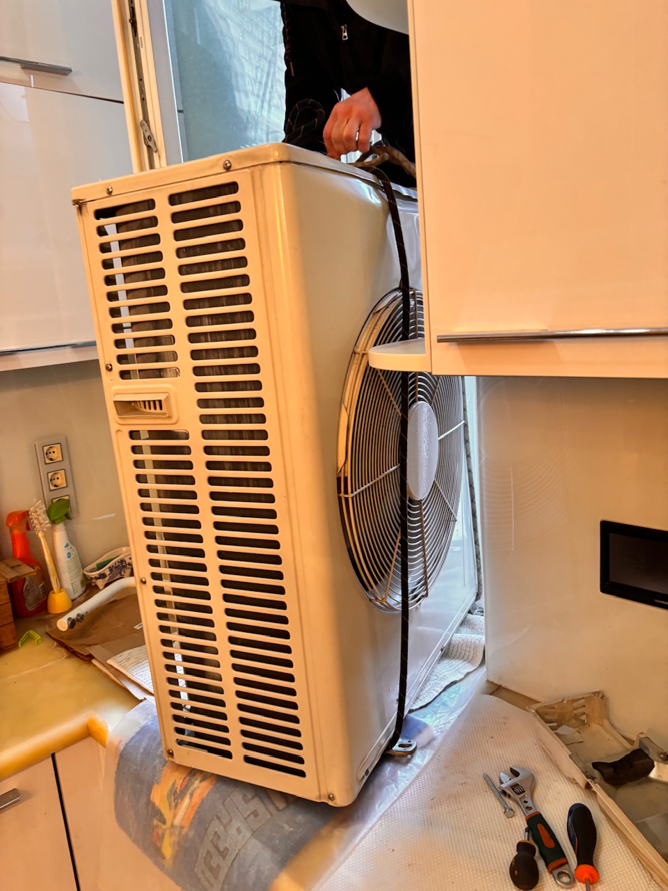 Упал лед на кондиционер , альпинист , демонтаж , монтаж замена , сплит -система Mitsubishi Electric muz-ef50ve