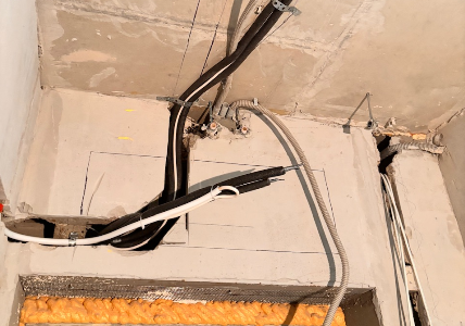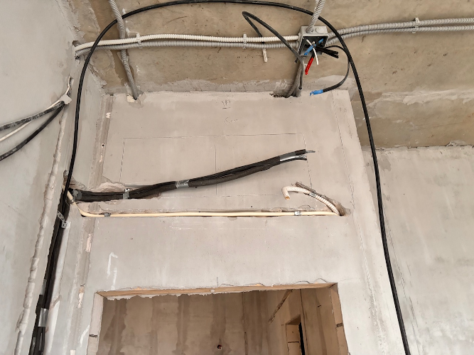 При выборе двухэтапного способа монтажа сначала выполняются все черновые работы. Отделка должна проводиться только после завершения штробления и укладки коммуникаций в канавки. Это правило позволяет сохранить эстетику интерьера, избежать дополнительных расходов, связанных с необходимостью восстановления финишной отделки.